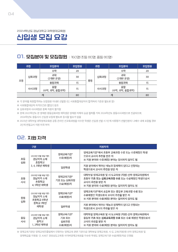 2024학년도 경남대학교 과학영재교육원 신입생 모집 안내
